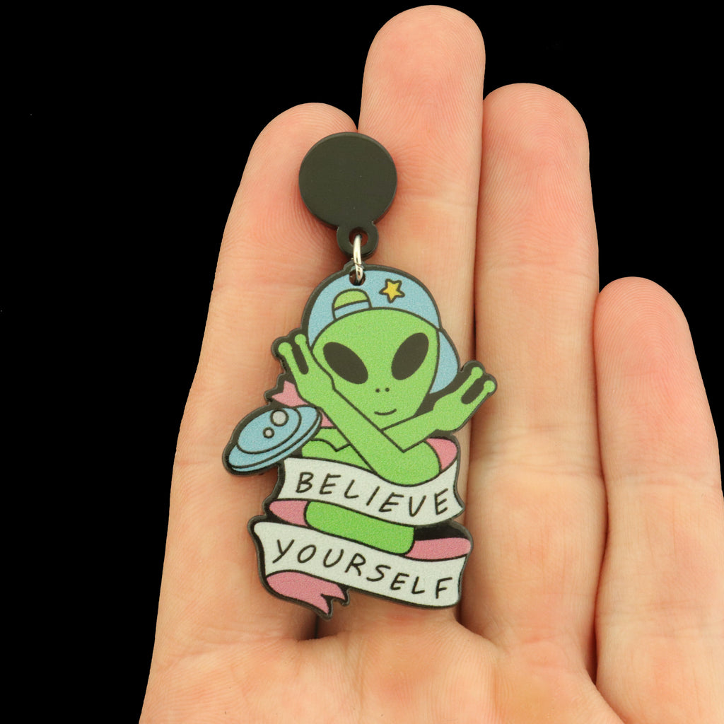 Believe in Yourself Alien Acrylic Earrings - 1 Pair - ER1069