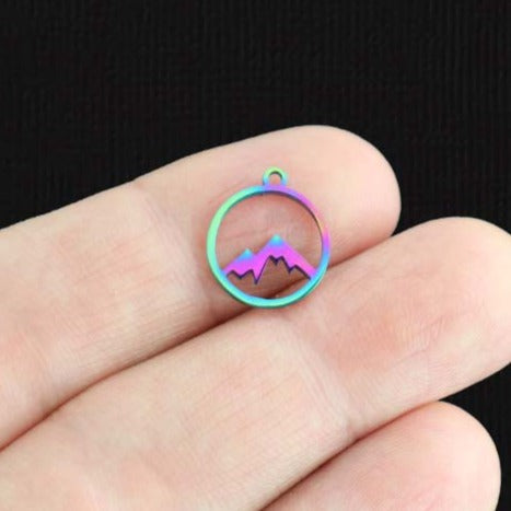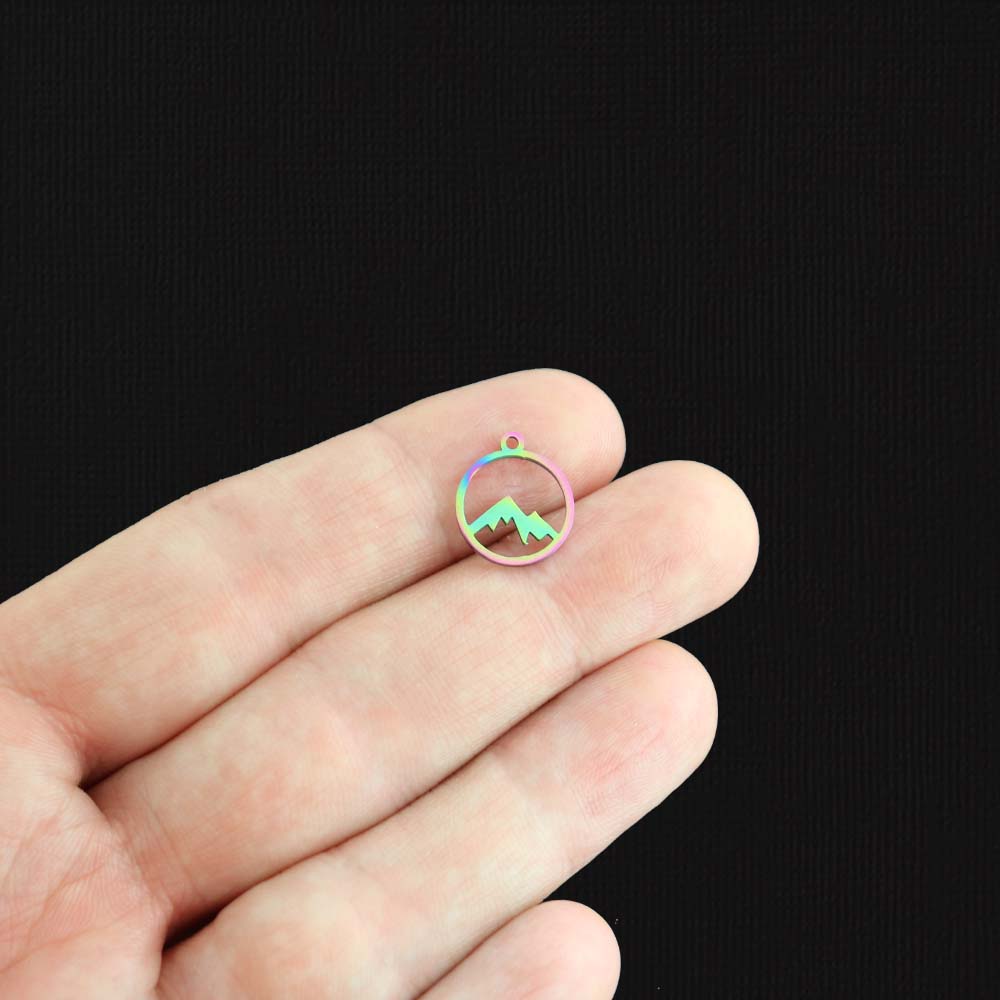 Round mountain cutout rainbow electroplated charms, in 201 stainless steel.