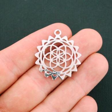 Flower of life antique silver tone charms, in a zinc alloy metal.