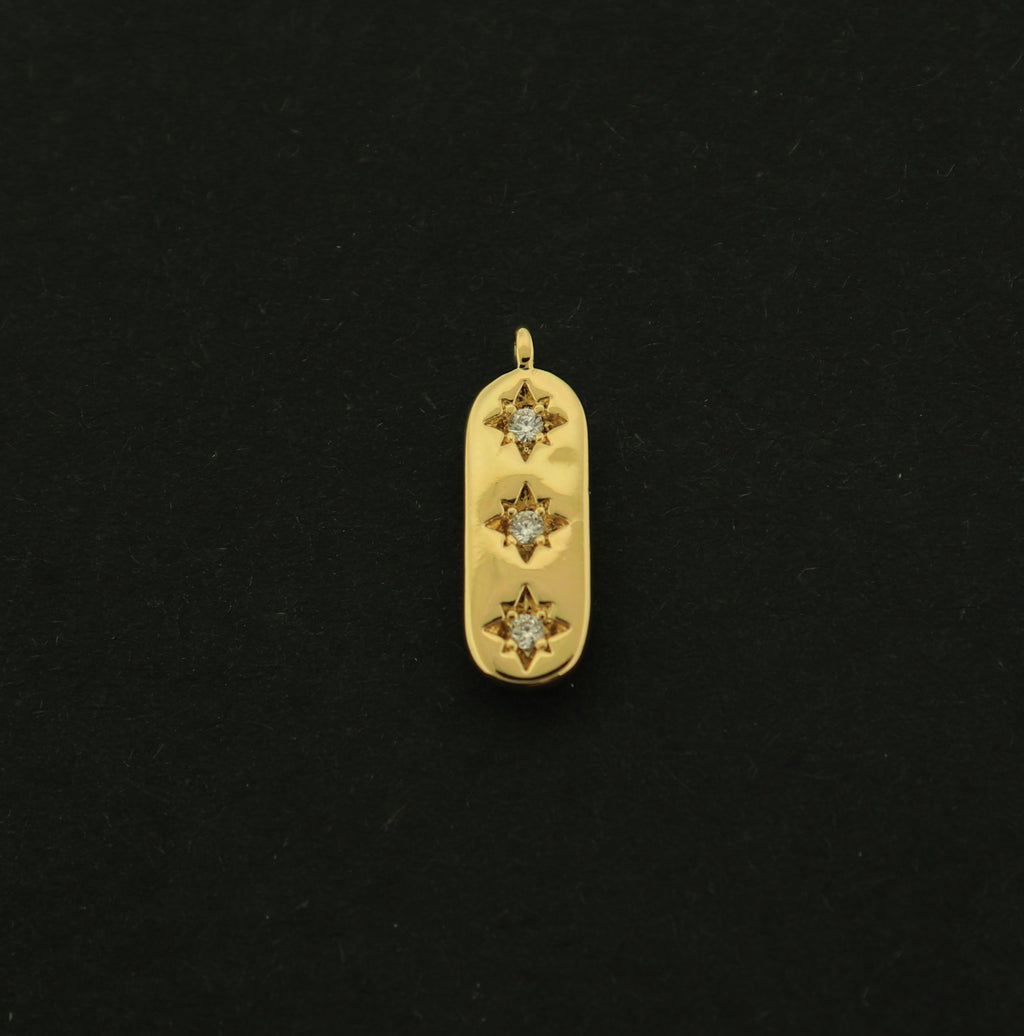 Check out these detailed drop charms with three stars... made of 14k gold plated brass, they are finished with a rhinestones! Very eye catching.