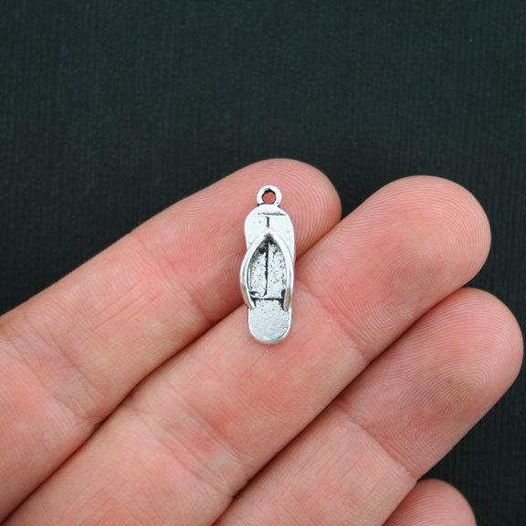 Flipflop sandal shoe antique silver tone charms, in a zinc alloy metal.