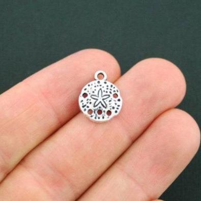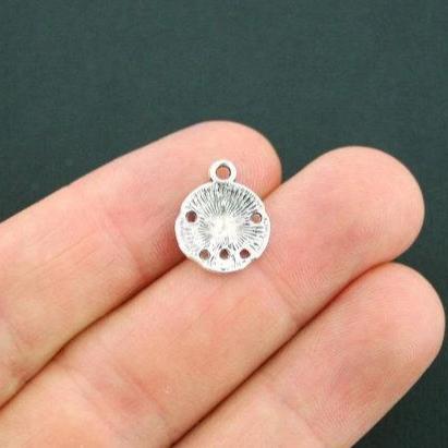 Sand dollar antique silver tone charms, in a zinc alloy metal.