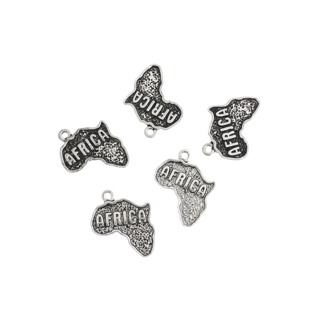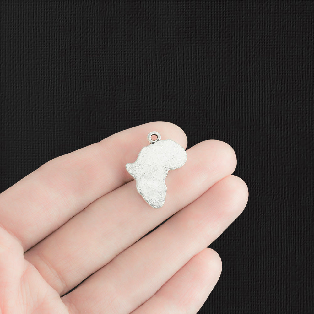 Africa map antique silver tone charms, in a zinc alloy metal.