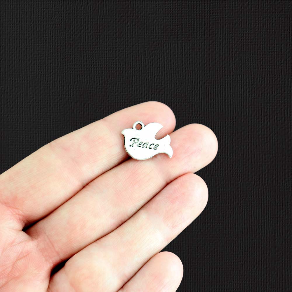 Peace dove antique silver tone charms, in a zinc alloy metal.
