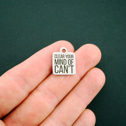 "Clear your mind of can't" laser engraved stainless steel square charms, from our exclusive line designed by Bohemian Findings.