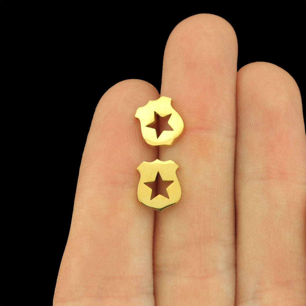 Police badge with star cut out gold, silver or black tone stud earrings in a 304 stainless steel metal with hole, the perfect base for your next earring creation!