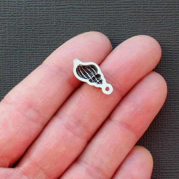 Sea shell antique silver tone charms, in a zinc alloy metal.