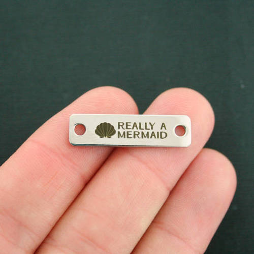 "Really a mermaid" laser engraved stainless steel connector charms with seashell image, from our exclusive line designed by Bohemian Findings.