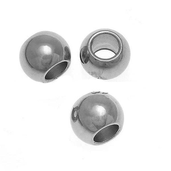 Silver tone stainless steel metal beads in a 6mm spacer, with a metallic finish.