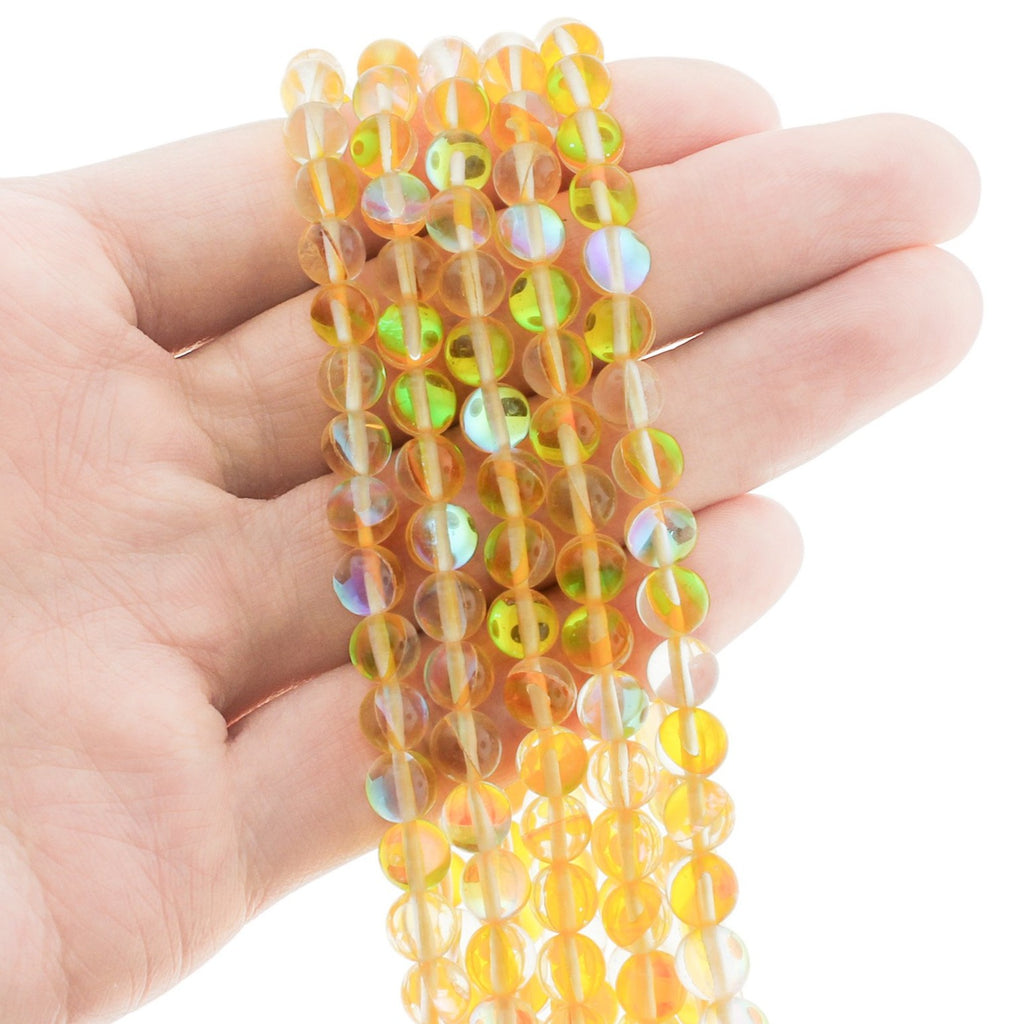 Electroplated natural labradorite beads in a 6mm round with a frosted finish. Available in pink or yellow.