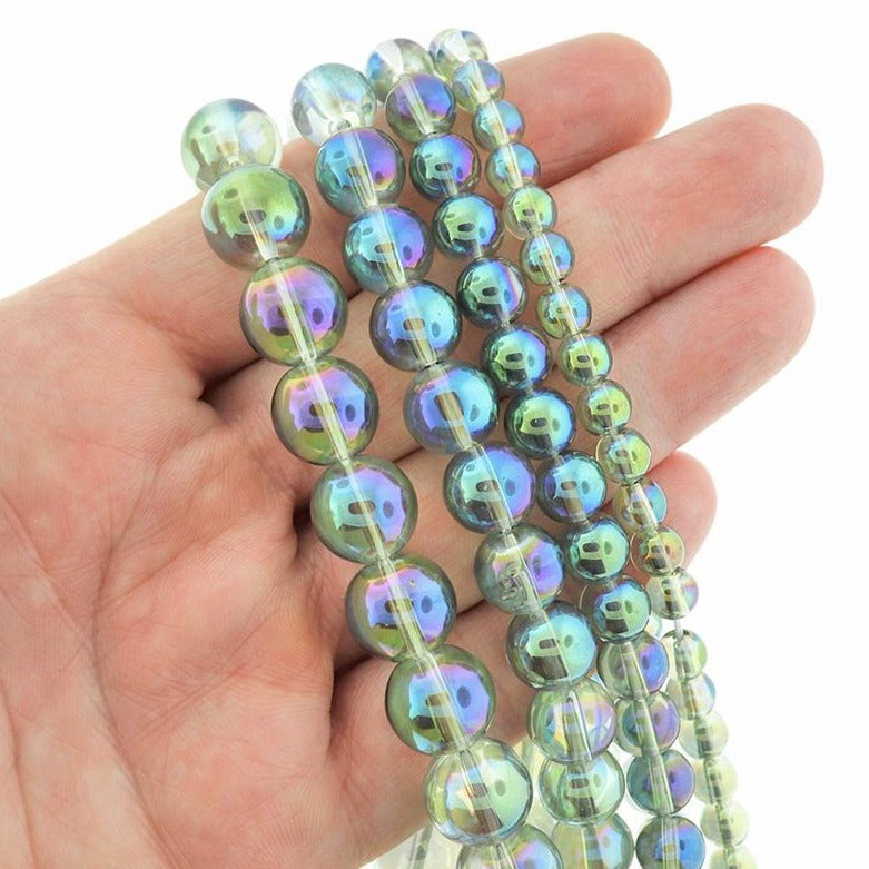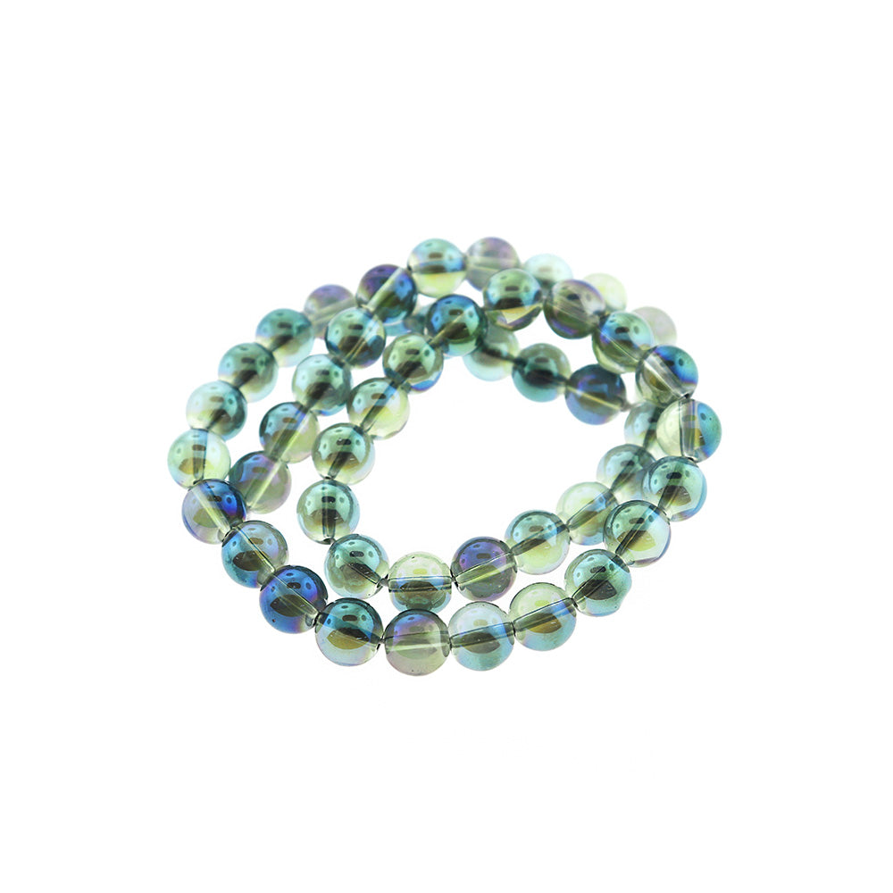 Clear quartzgemstone beads in a 6mm, 8mm, 10mm, or 12mm round, with an electroplated finish.