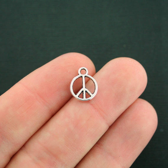 Peace sign antique silver tone charms, in a zinc alloy metal.