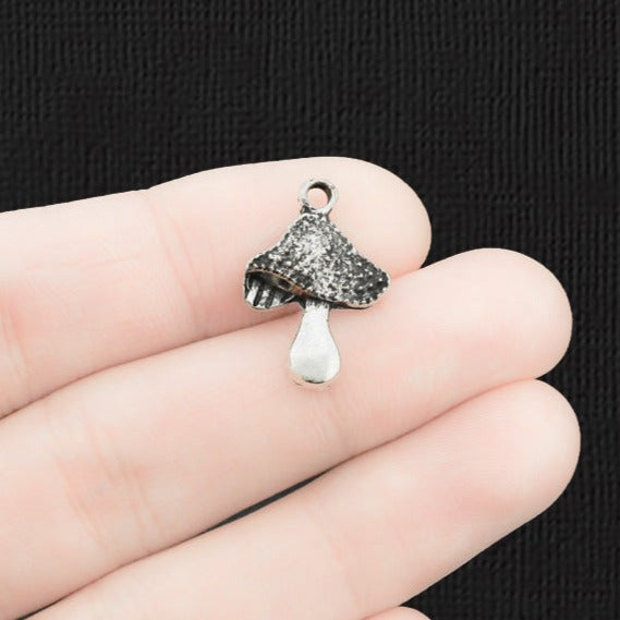 Mushroom antique silver tone charms, in a zinc alloy metal.