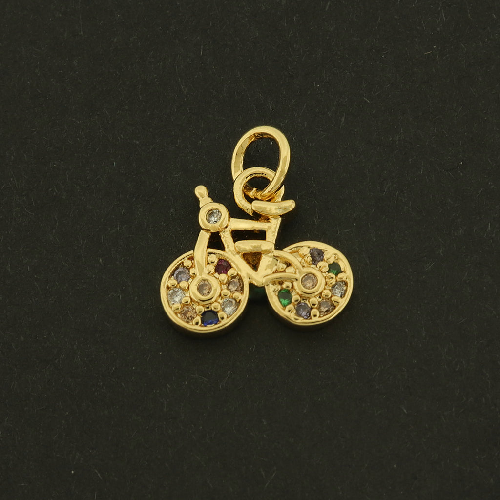Check out these bike charms.. made of 18k gold plated brass and finished with multicolor rhinestones. Perfect to add to travel jewelry!