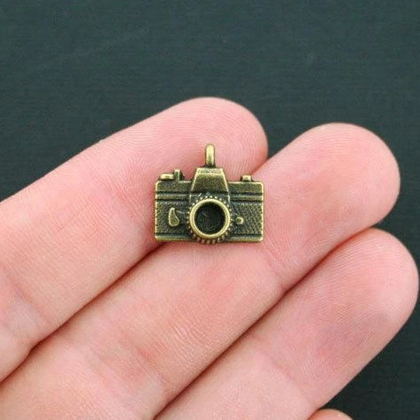 Camera antique bronze tone charms, in a zinc alloy metal.