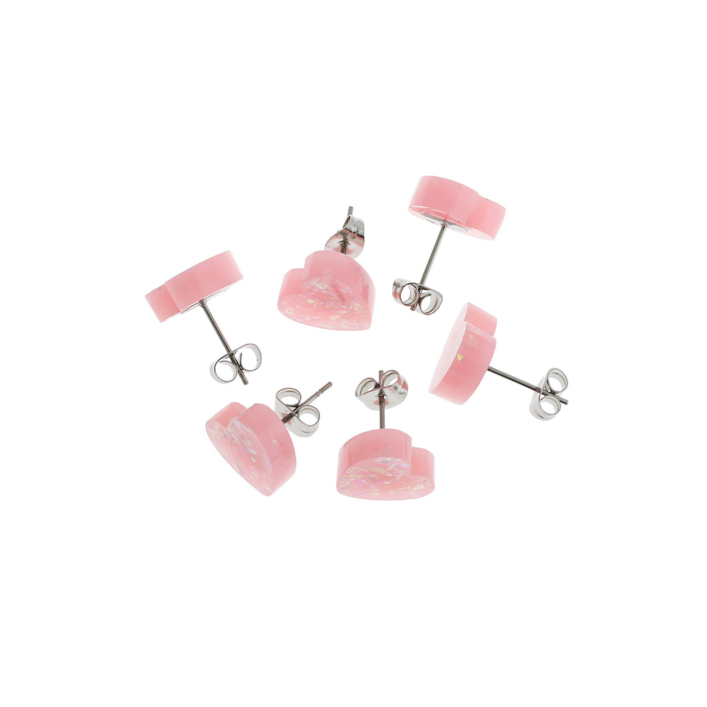 Sparkle pink resin heart stud earrings in stainless steel, perfect for a simple look!