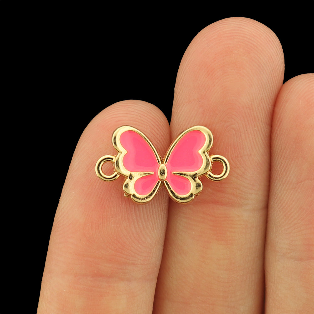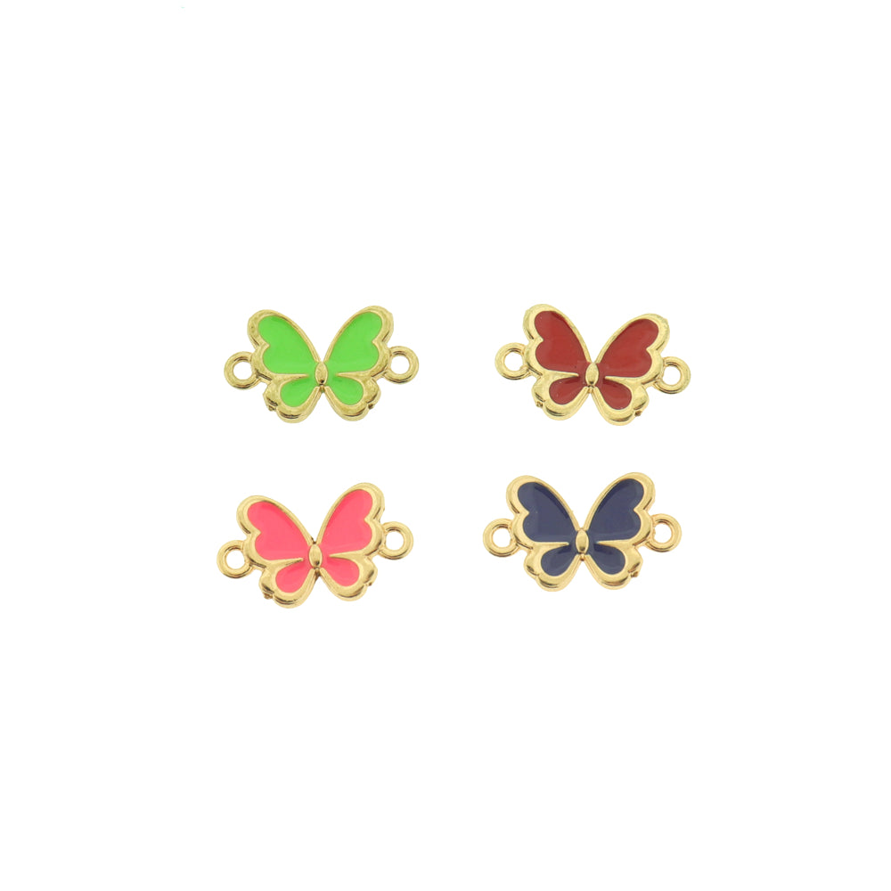 Dainty butterfly connector charms, in enamel and zinc alloy metal. Available in blue, pink, green and red!