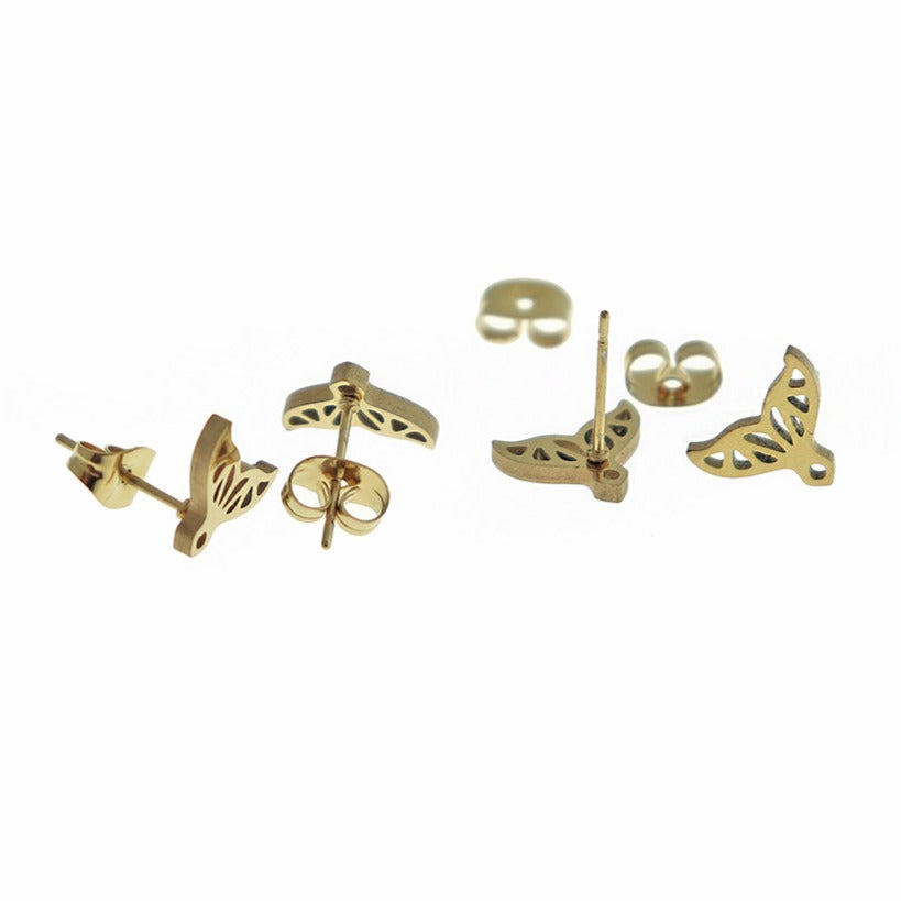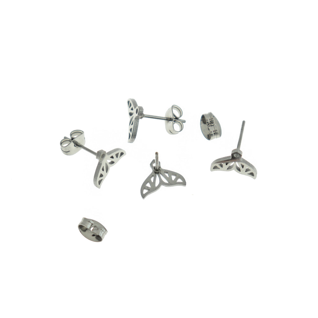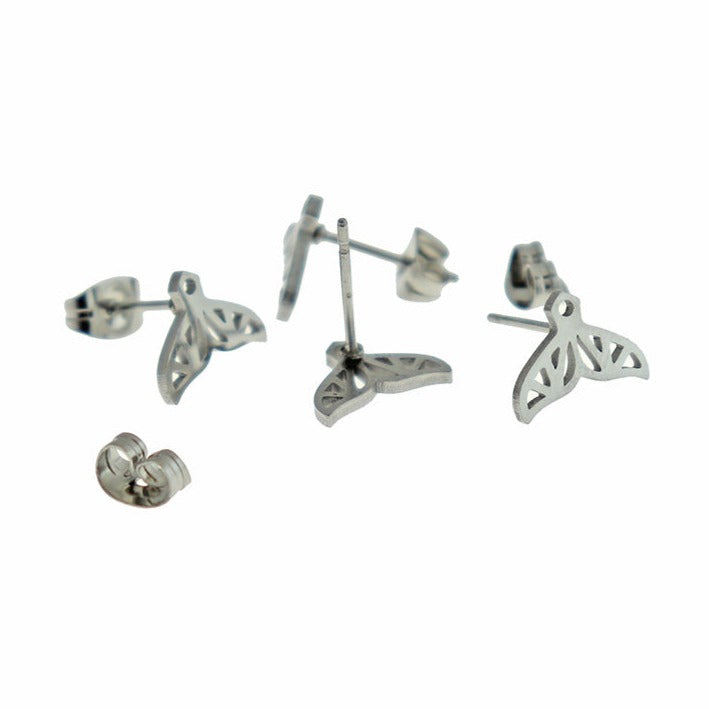 Origami whale tail stud earrings in stainless steel, perfect for a simple look! Available in silver, gold, rose gold, and black tones.