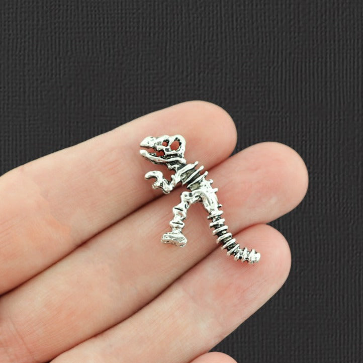 Tyrannosaurus Rex skeleton antique silver tone charms, in a zinc alloy metal.