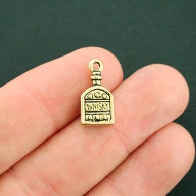Whisky bottle antique gold tone charms, in a zinc alloy metal.