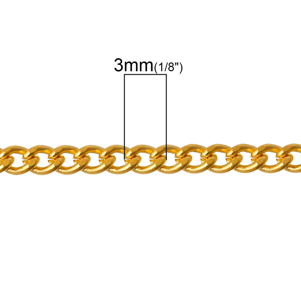 Bulk gold tone curb link chain in an iron alloy, the perfect base for your next jewelry creation!