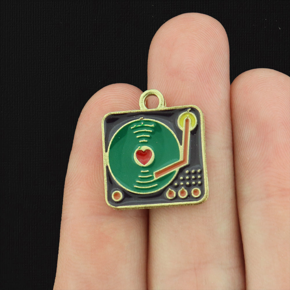Record player gold tone charms, in a zinc alloy metal and enamel.
