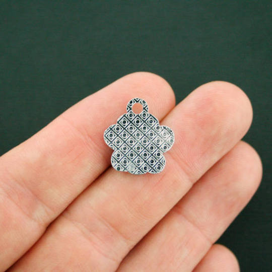 Dog paw silver tone charms, in a zinc alloy metal and enamel.