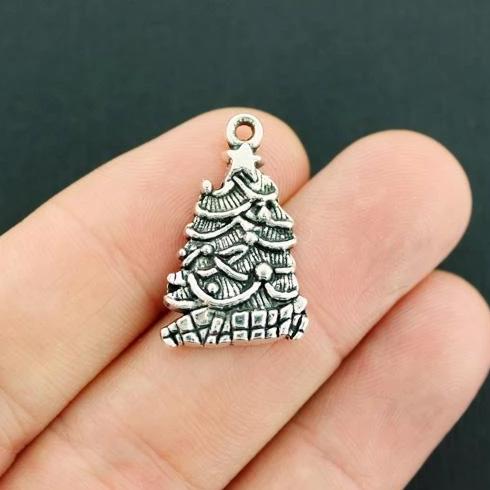 Christmas tree with presents antique silver tone charms, in a zinc alloy metal.