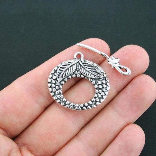 Leaf toggle clasps silver tone, in a zinc alloy metal.