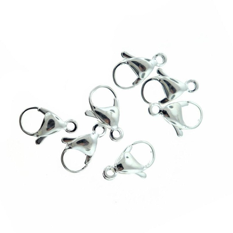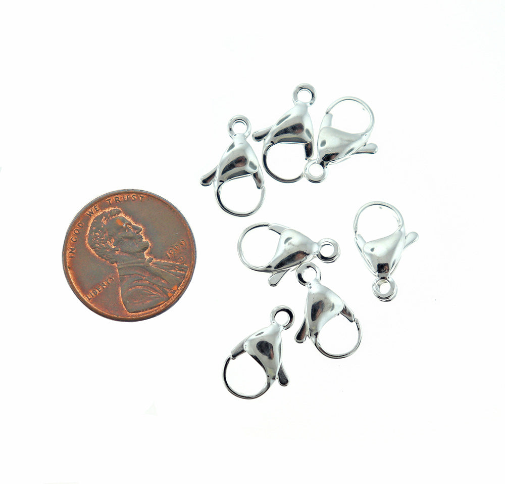Bright silver tone stainless steel lobster claw clasps in 304 stainless steel, an absolute staple for any jewelry making project!