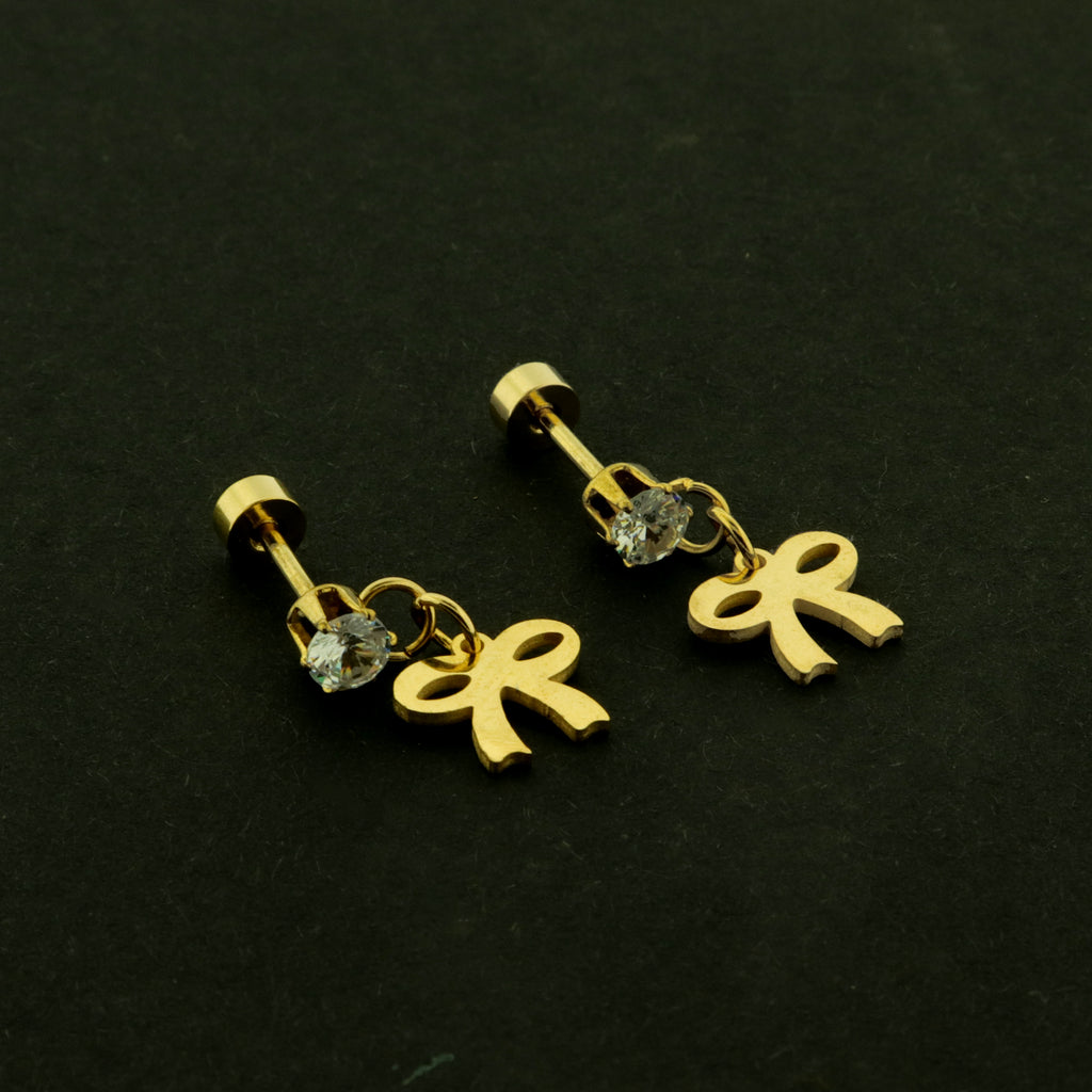 Check out these small trendy gold bow earring studs ... super detailed, they are made with a hole at the bottom to hang charms! They are made of 14k gold plated copper.