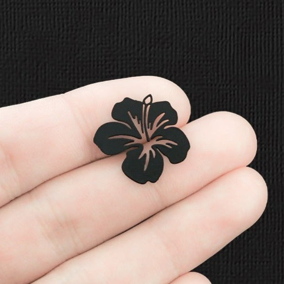 6 Filigree Tropical Flower Black Enamel Copper Charms 2 Sided - E1464