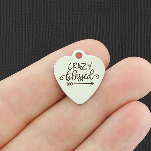 "Crazy Blessed" laser engraved stainless steel heart charms with arrow image, from our exclusive line designed by Bohemian Findings.