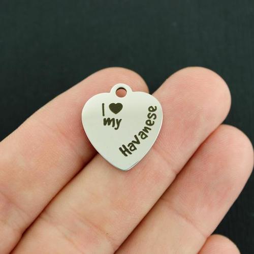"I heart my havanese" laser engraved stainless steel heart charms, from our exclusive line designed by Bohemian Findings.