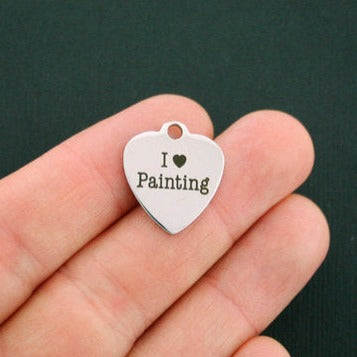 "I love Painting" laser engraved stainless steel heart charms with heart image, from our exclusive line designed by Bohemian Findings.