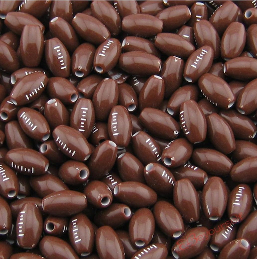 Brown acrylic beads in a 15mm x 9mm football, with a polished finish.
