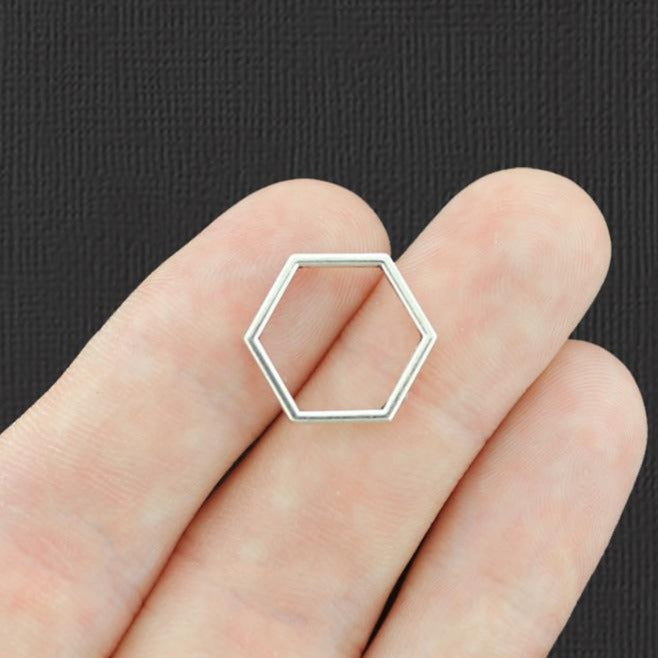 Hexagon honeycomb linking ring antique silver tone charms, in a zinc alloy metal.