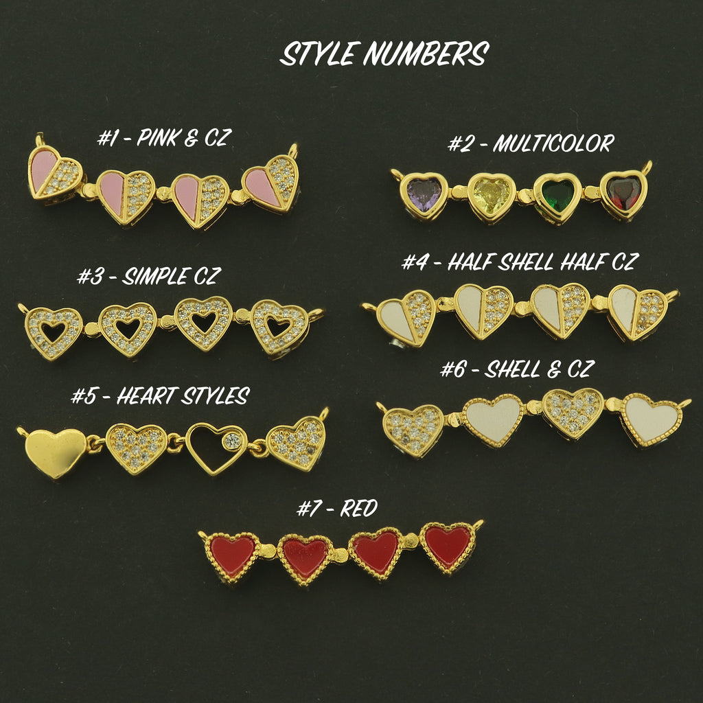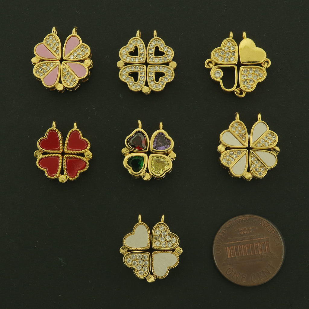Check out these unique heart connectors! Made with magnets, they can close up to make a four-sided heart, or they can open to four side by side hearts! They include inset rhinestones, and are made of 14k gold filled brass. Choose from 7 different styles!
