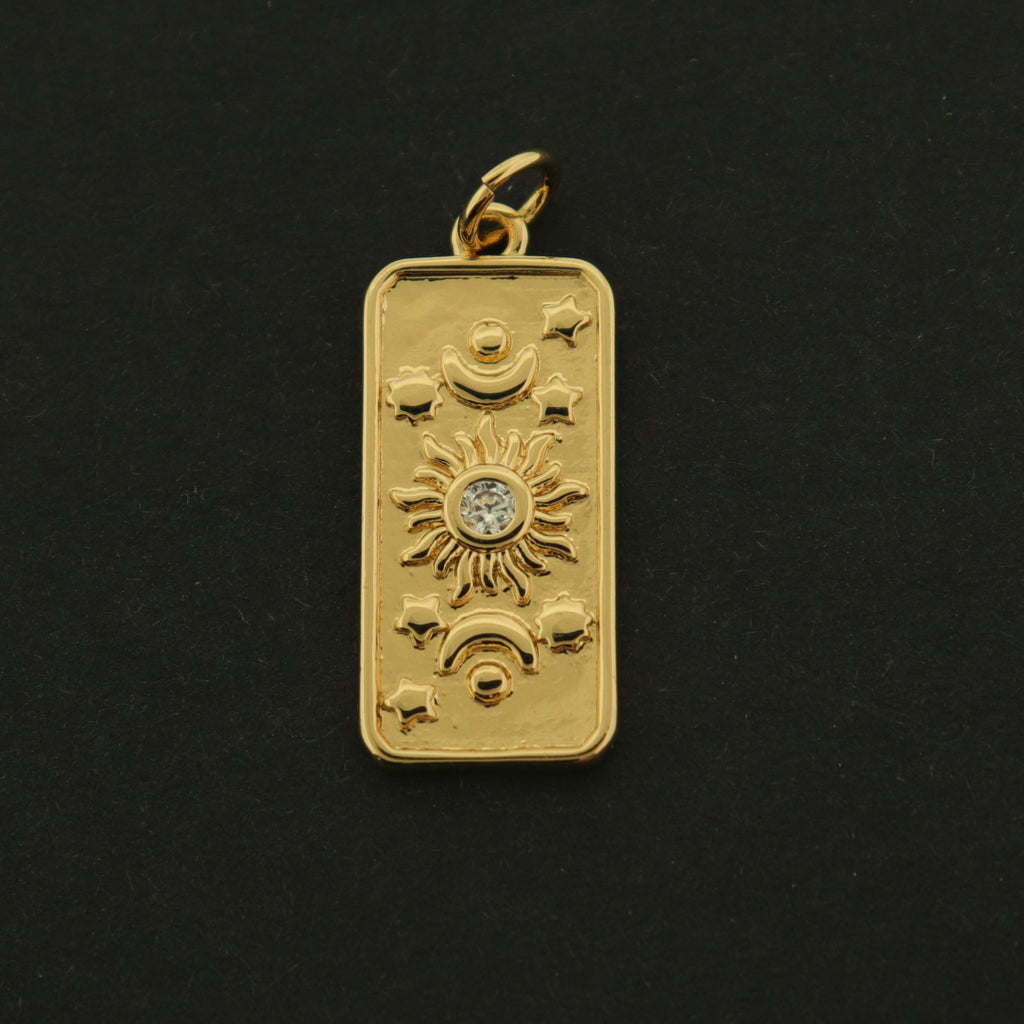 Check out these detailed sun charms... They are made of 14k gold filled brass with an inset rhinestone! Available in gold or white gold plated.