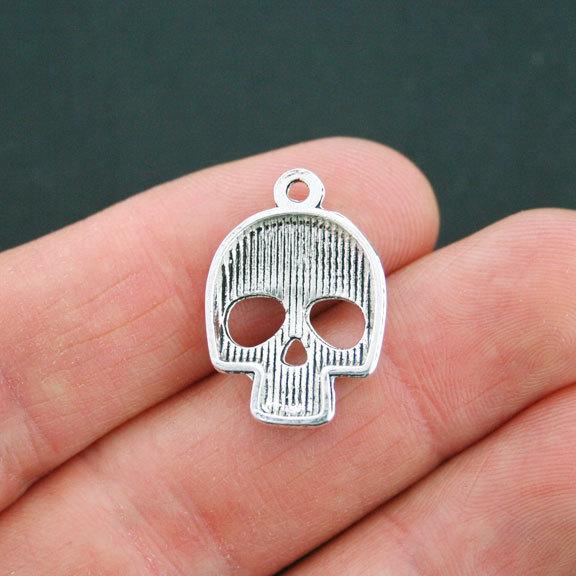 Floral skull antique silver tone charms, in a zinc alloy metal.