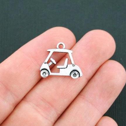 Golf cart antique silver tone charms, in a zinc alloy metal.