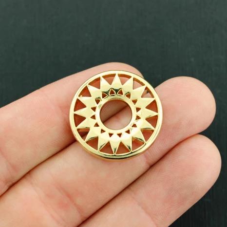 Tribal sun open design connector gold tone charms, in a zinc alloy metal.
