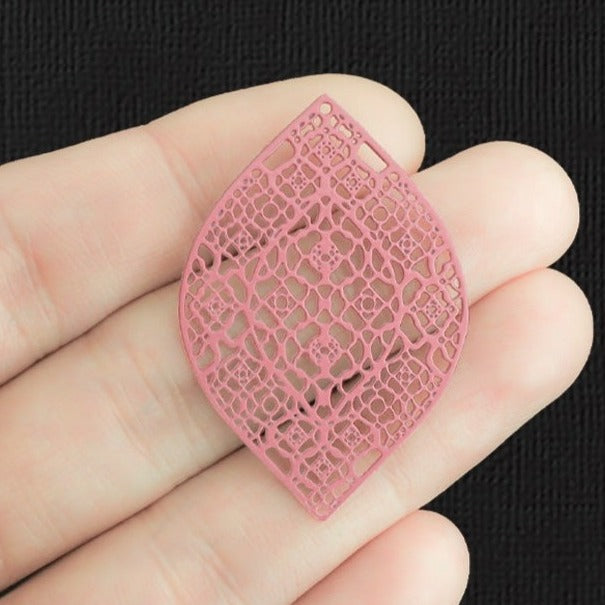 4 Filigree Leaf Pink Enamel Stainless Steel Charms 2 Sided - SSP399