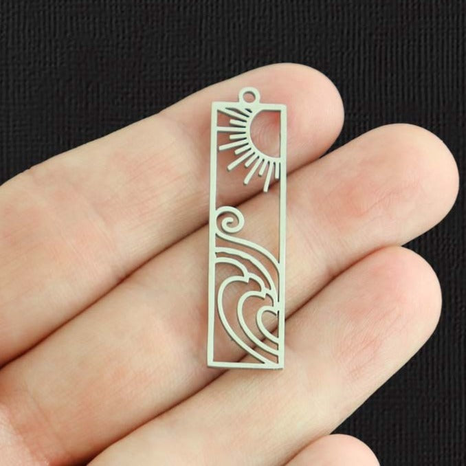 Sun and ocean silver tone charms, in 201 stainless steel.