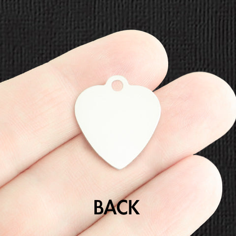 The charms are made from high-quality stainless steel hand polished on both sides. Stainless steel is hypoallergenic and won't tarnish. The lettering will not fade, as we don't use any aerosol paints or chemicals in our lasering process.