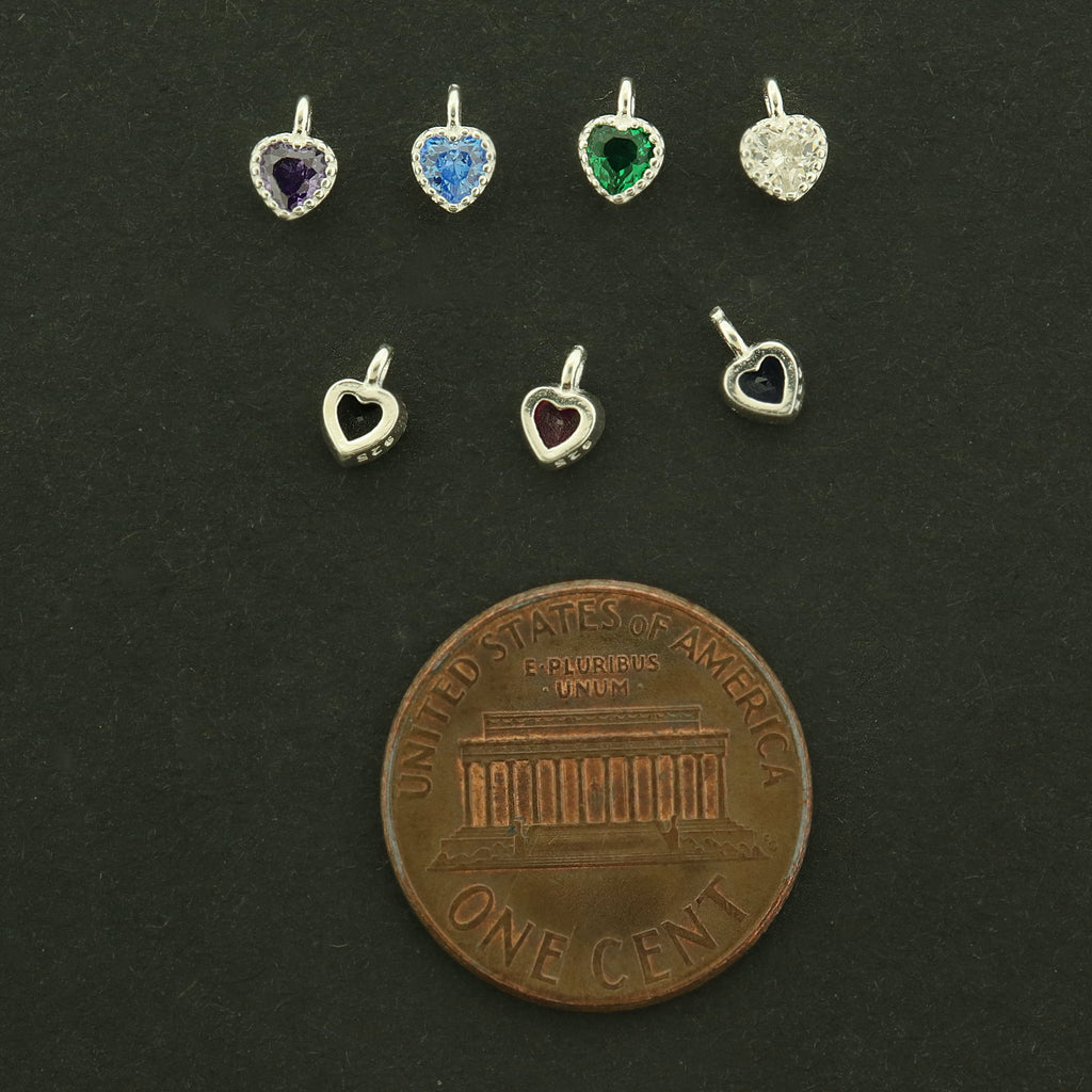 A real staple for all jewelry makers... dainty heart charms made of sterling silver! Finished with inset rhinestones, they are available in 7 different colors.