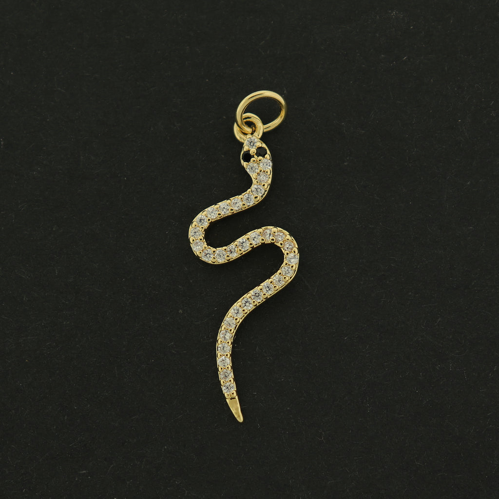 Check out these super cute snake charms... with inset clear and black rhinestone details. They are made of 14k gold plated copper.