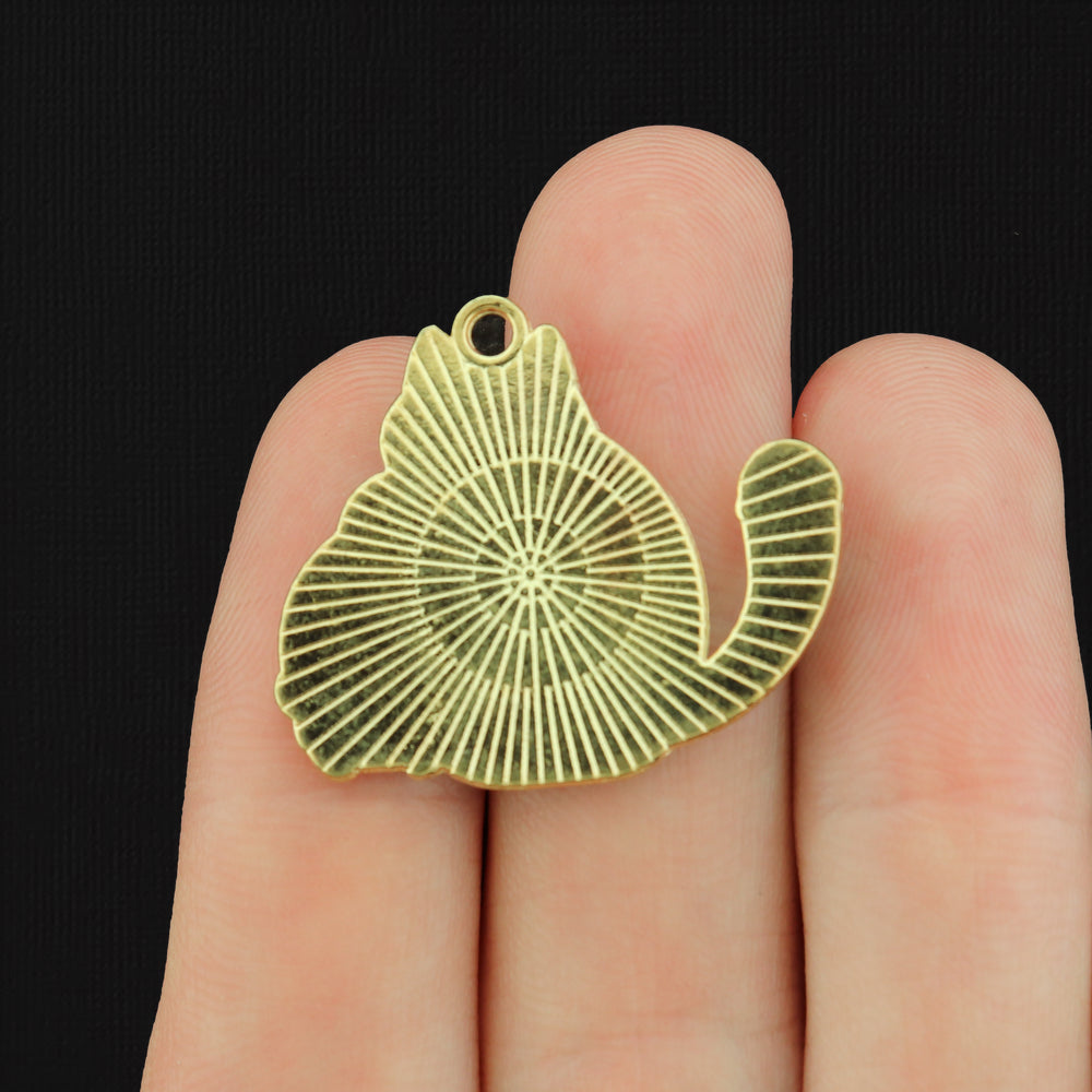 Black cat with moon phases and skulls gold tone charms, in a zinc alloy metal and enamel.