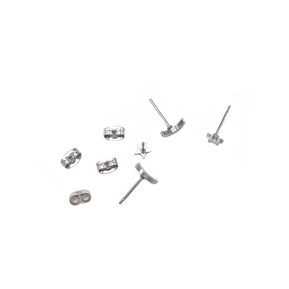 Boucles d'oreilles clous étoile et croissant de lune argentées en acier inoxydable 304, parfaites pour un look simple !