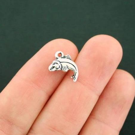Breloques poisson argenté antique, en alliage de zinc. Parfait pour les bracelets, pendentifs, boucles d'oreilles, tirettes de fermeture éclair, signets et porte-clés !